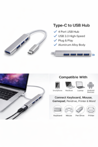 Aaj ke time me jab laptops aur smartphones slim ho rahe hain, tab ports ki problem common ho gayi hai. Is problem ka simple solution hai Type C to USB Hub. Ye device aapko ek hi Type-C port se multiple USB devices connect karne ki suvidha deta hai.